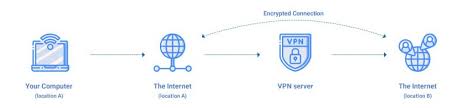 该技术用于加密互联网连接。隐藏了您的真实IP地址以使设备匿名,这样任何人都无法跟踪您的在线活动,即使在防火墙后面,您也可以访问受限制的网站。